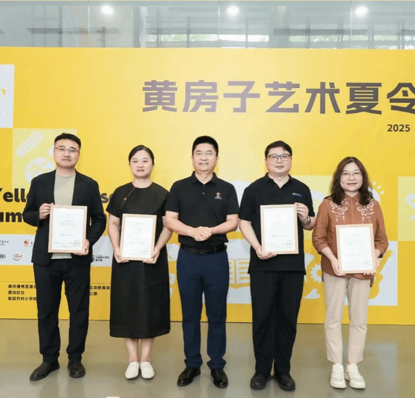 中国红十字基金会向公益伙伴中国美术学院、中国美术学院美术馆、浙江广电集团和浙江卫视颁发致谢状,“黄房子”美学启蒙公益项目的发起人李宇春向参与活动的两位艺术家高世强教授和李沅骏先生递交《艺术公益伙伴证书》。