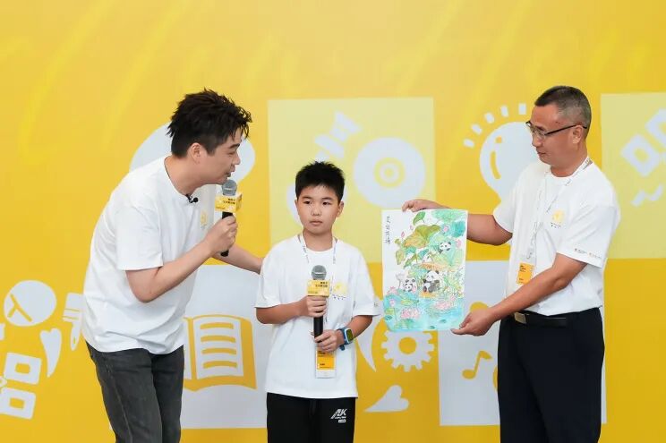 两组师生代表展示画作,并分享创作故事。让我们看到乡村美育老师们的辛劳付出以及孩子们凝聚在小小画纸上的璀璨梦想。