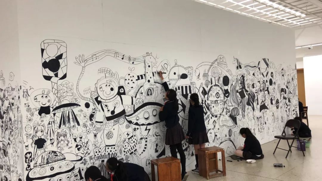「时间,是一个玩跳棋的儿童,儿童掌握王权——赫拉克利特」,中国美术学院附中与附小的同学们受邀参与绘制美术馆墙面,想象与投射十年之后的学院、自己和同伴,以游戏与自由绘画的方式完成对2028年的的敞开与允诺,孩子们的创造力源流形成了一首丰姿多彩、气象万千的迭奏曲,文本空间与图像空间相互渗透,创造出绝对欢快的、无所畏惧的、无拘无束的和坦白直率的语言,以无穷的想象力、旋律与风景展开未来学院的图景与画卷。