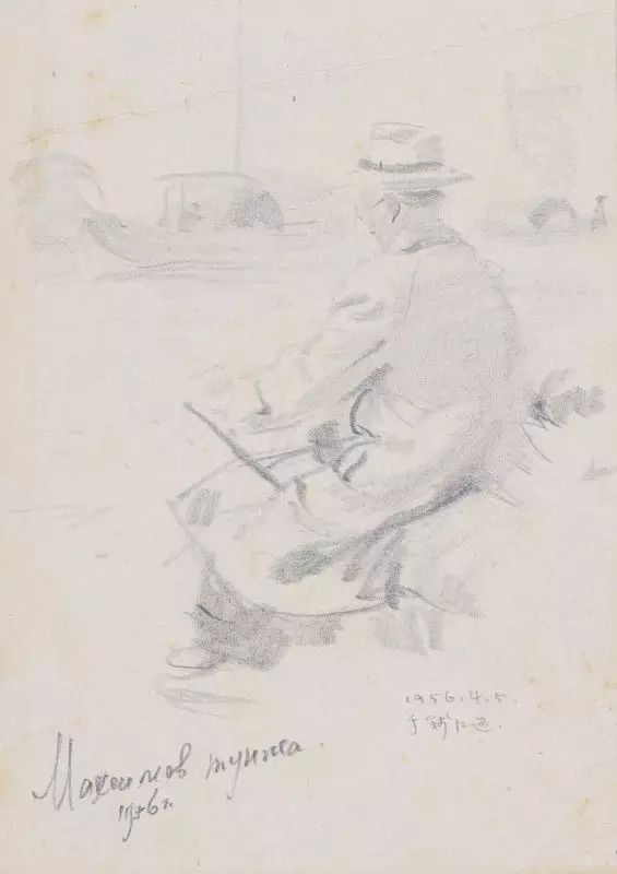 ▵ 《苏联画家马克西莫夫在写生》1956年 速写 18.3×13厘米