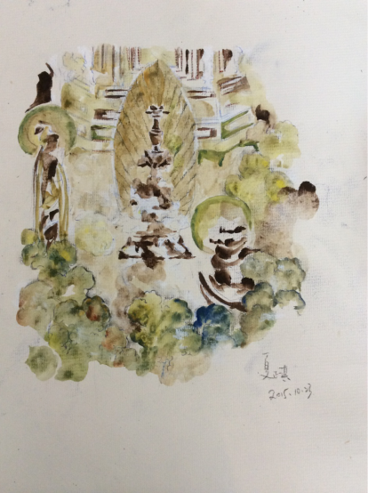 而我国古代壁画有着近千年的历史,经过岁月的洗礼,变得残缺不堪;而这种残缺却蕴含着历史的沧桑之美,时间的流逝与沉淀反映在画面上,气势磅礴,震撼力强。本次课程,旨在学习借鉴。用日常生活中随手可得的材料,彩铅,油画棒,马克笔,丙烯等普通的绘画材料,力求临摹体会壁画的绘制方式。通俗易懂,简单易学。最根本之处在于培养学生的动手能力和审美体验,了解国内的传统美学,增强对传统文化的自信。同时,综合材料在绘画中的使用,增强了学生的自主创新。不同绘画材料之间碰撞产生的肌理美感,能更好的调动绘者的主观能动性,审美体验与想象力。对于美学情操与创造力大有裨益。