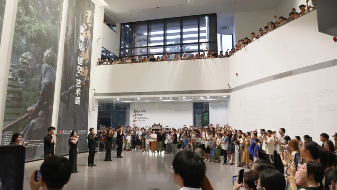 这场由中国美术学院美术馆与浙江音乐学院声乐歌剧系联合打造的表演,不仅深度诠释了《黑神话:悟空》的文化内核,更通过跨界融合的创新表达,为展览注入了鲜活的力量。艺术展览、游戏IP与声乐表演在这场跨界活动中进行了一次深度对话,现场观众表示:“用声乐唱出游戏的气势和展览的深度,这种形式太惊艳了!”