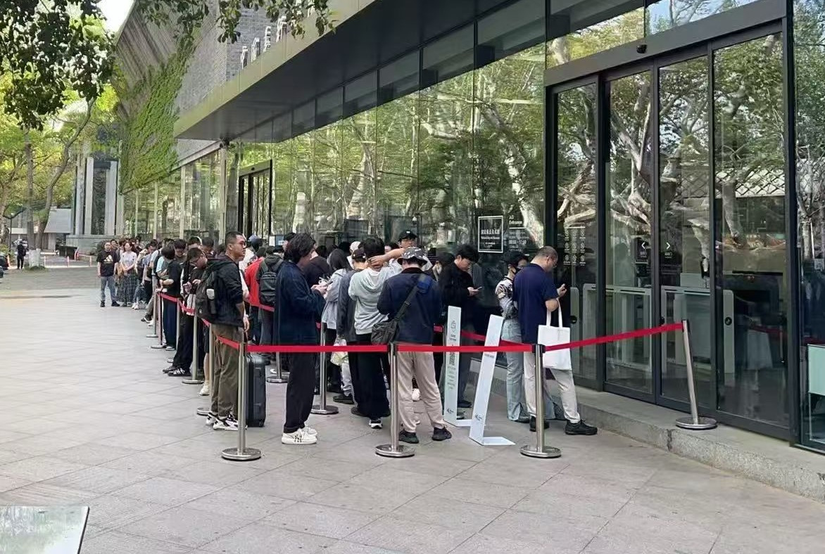 上午9点不到,美术馆门口已经排起了长队。这场景也在意料之中,毕竟昨天下午,黑压压的玩家大军和媒体矩阵已经列队美术馆门口,提前领略这场虚实相融的盛宴。