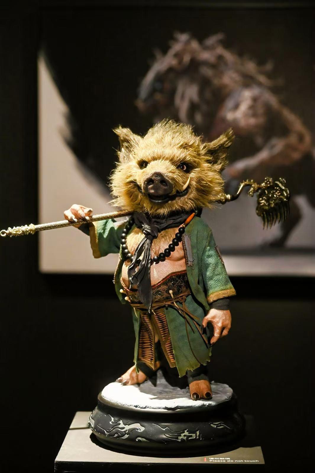 转过黄风岭,是大头怪、四妹、八戒等手办。六晓站在四妹旁,几乎一模一样,她说自己这一身从头到脚的装容花了5个小时,仅服饰的定做修改就用了5个月;大头怪对很多玩家来说是噩梦,很多卡在第一关的人就是无数次死在它手里;八戒看上去萌萌的,宣学君说其实八戒身上不蓝不绿的袍子充分尊重了西游记原作里的描述。