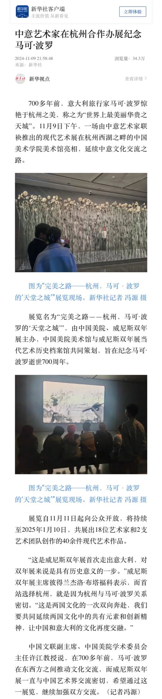 “完美之路——杭州,马可·波罗的‘天堂之城’”自11月9日开幕以来,截至12月11日共得到近百家媒体报道,涵盖纸媒、客户端及网站、公众号、电视台及新媒体平台等类型。