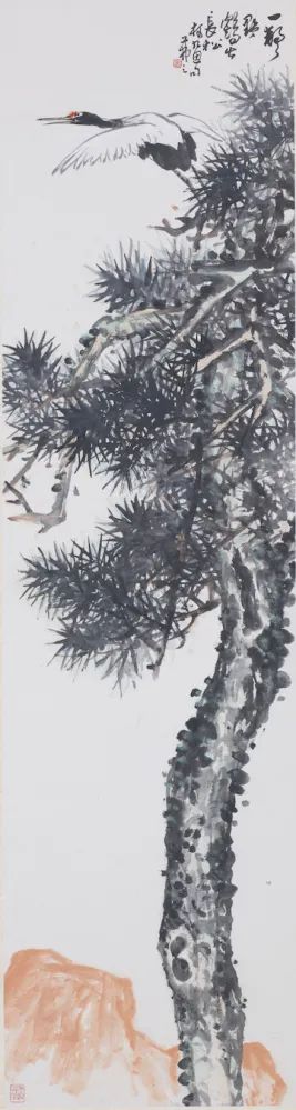 吴茀之 《一声野鹤出长松》 179x47.5cm
