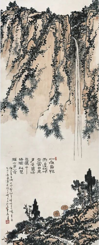 我们能看到潘天寿先生一直践行的开阔奇绝、高风峻骨、坚韧不拔,这种风格贯穿了他的画面、思想和人生。他的用笔,刚劲凌厉,不似古代文人画的荒疏萧散,表现出现实生活欣欣向荣的一面,以“强其骨”来表达积极进取和不屈不挠。