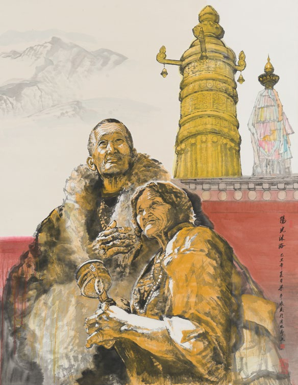 自此之后的他一发不可收拾、不断反复实践,进行了上百幅的西藏题材的国画人物创作,热情讴歌浓郁沉厚的藏族风情与蓬勃向上的时代生活,让“浙派人物画”的精髓得到了真正的传承。