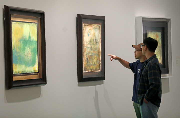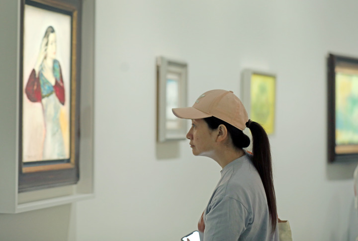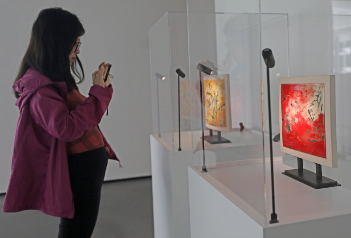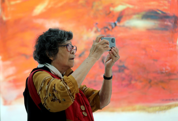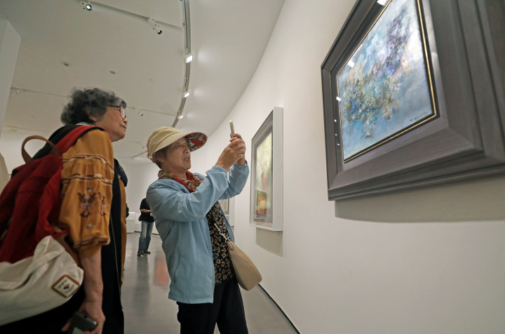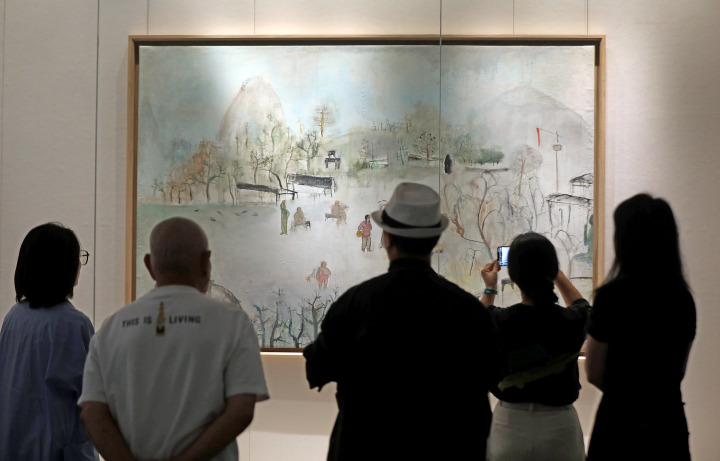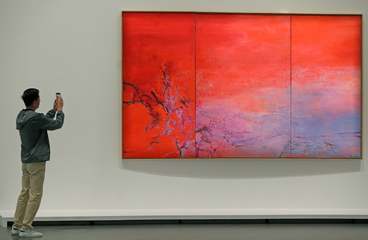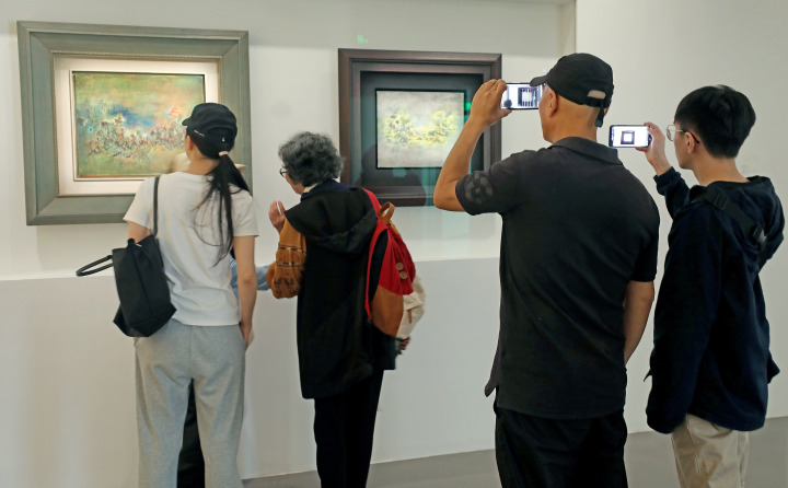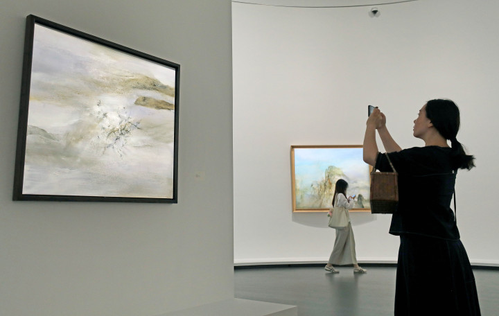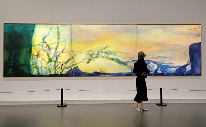 9月26日,在杭州南山路中国美术学院美术馆,赵无极百年回顾特展对公众开放,观众们可以近距离欣赏赵无极的作品。此次展览是杭州第19届亚运会重要文化项目、2024中法文化旅游年项目、浙江省文化艺术发展基金重点项目。