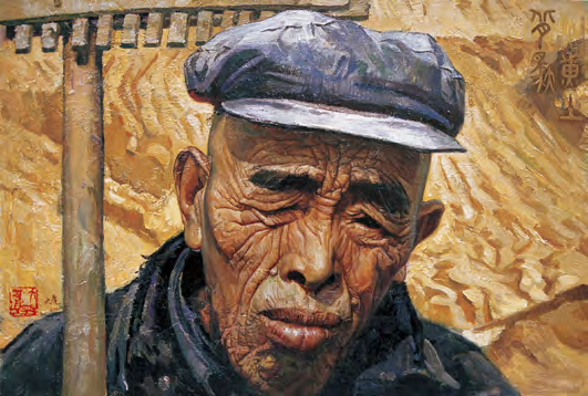 他画纳鞋底的大娘和她脸上密密层层的皱纹,画蒙山沂水间的大嫂和她爽朗热诚的微笑,画求学中的农村孩子和她坚毅生动的明眸,画战争年代的抗战将士和他们的朴厚与刚强。大虎先生把自己内蕴着的虎虎生气转化到中国胶东半岛蓝天红土间的人民的身上,形成一种文化学意义上的独特地域族群的人民风神。