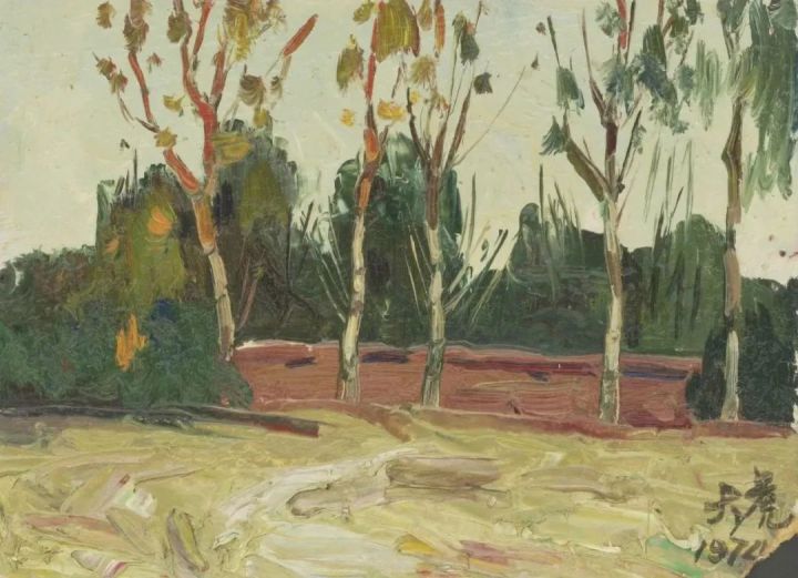 《树》油画 13×17cm 1974年 中国美术学院美术馆藏