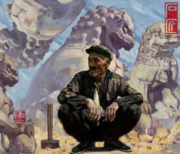 与军旅题材“历史瞬间”的叙事性画面不同,秦大虎在家国主题的表达上,舍弃了时间和空间的客观性,转而以宏大的视角将历史文化元素与当下人物刻画融合在一个画面之中,“不断变换视角和空间组织,借助纯视觉的、自足的、具有地方色彩的术语,例如长城、秦俑、石雕、剪纸、窗花、布娃娃、汉砖、印章,等等,通过理智的重新组合,以衬托有象征性和普遍性的人物形象,创造出一种超现实的视觉存在。”这些作品以油画的语言讲述东方的意蕴,具有强烈的民族风格和乡土气息,丰富了新中国油画的表现图式,是秦大虎另一类典型的代表作品。