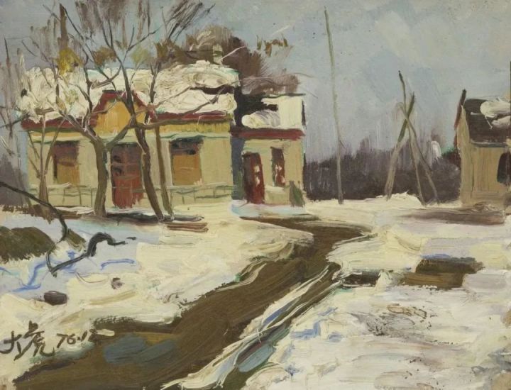 《冬日的房子》油画 16×20cm 1976年 中国美术学院美术馆藏