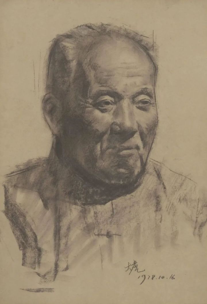 《老农像》素描 51×37cm 1980年 中国美术学院美术馆藏