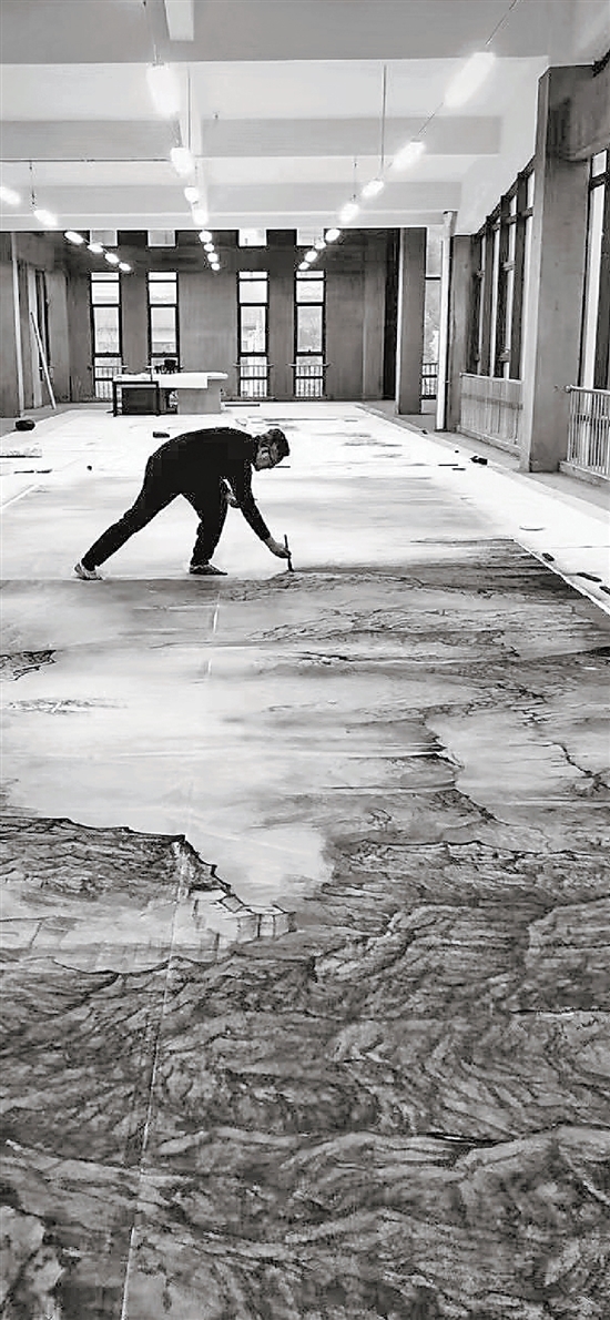 今年春天创作时,他借用了一个大场地作为工作间,花了两个月时间“搜尽奇峰打草稿”。