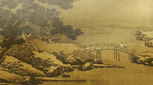 《濠梁秋水图》局部,“一江两岸”的画面格局