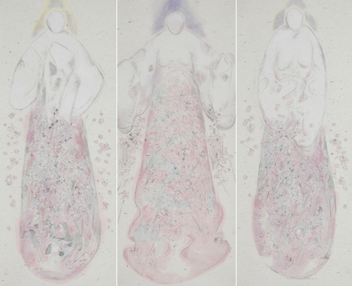 莫晓松《飞花漫天游》99cm×209cm 纸本重彩 2022年