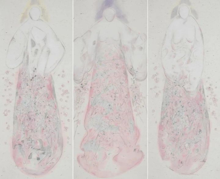 李晓柱《桃花度》243cm×100cm×3