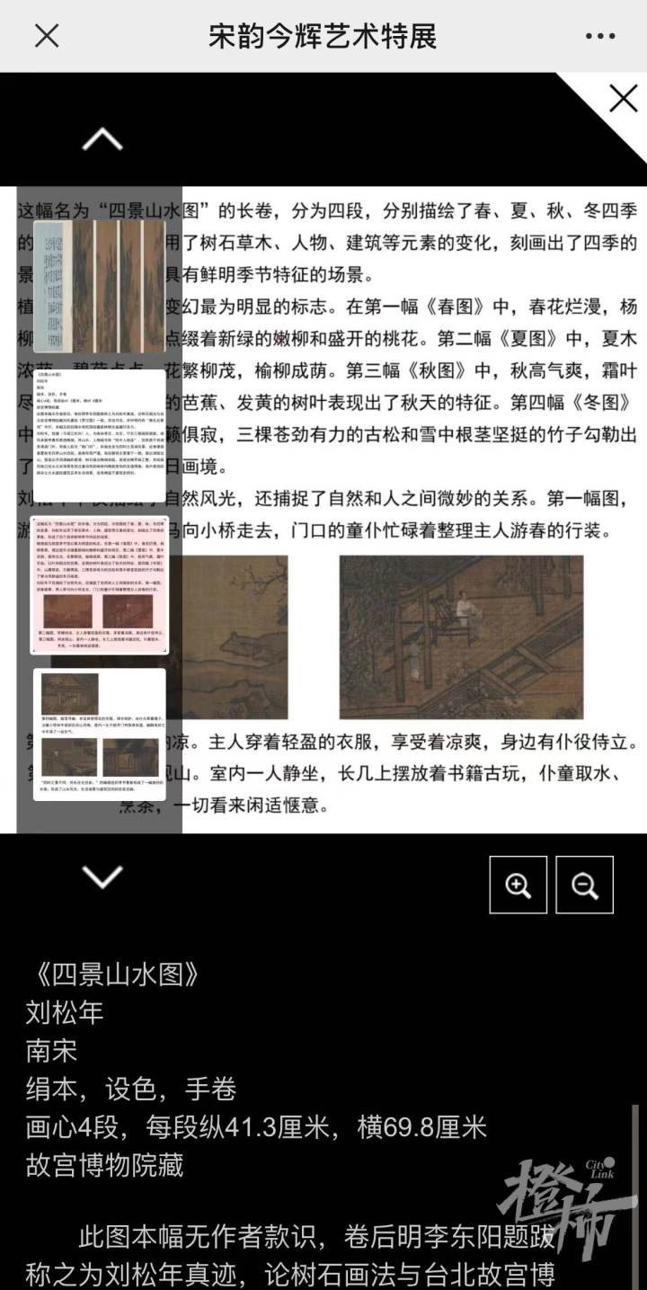 重点展品都可以点击放大,看画中的局部细节,并配有详细的作品说明解析。足不出户也可以实现“云观展”。