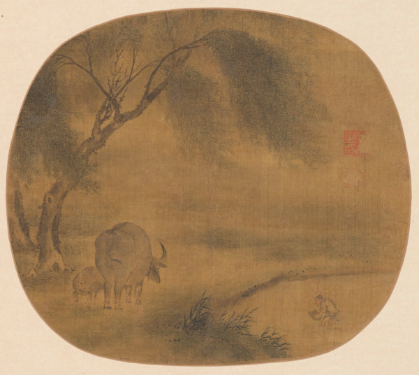 “宋韵今辉”艺术特展展出书画 南宋 佚名《柳下双牛图》 上海博物馆藏