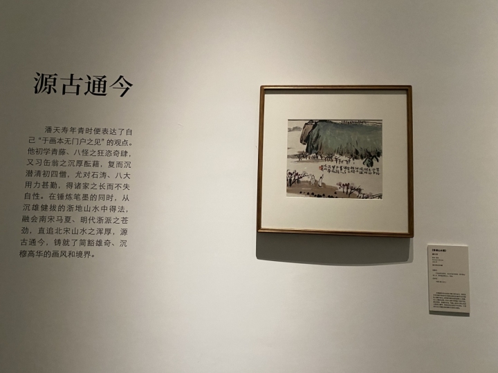 “立最高峰——潘天寿的常变之道”则呈现潘天寿“中西绘画,要拉开距离”,以“充分了解自己”的方式,以高度自信和宽广视野面对世界,呈现出来的新中国气象、新时代风神。