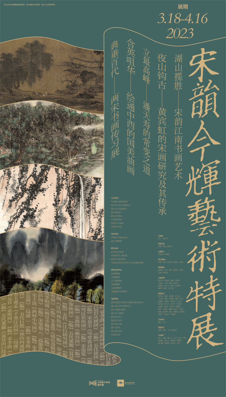 ◎ 展览简介:“宋韵今辉”艺术特展系列包含“湖山揽胜——宋韵江南书画艺术”,以及“夜山钩古——黄宾虹宋画研究及其传承”“立最高峰——潘天寿的常变之道”“含英咀华——绘通中西的国美油画”“典垂百代——两宋书画传习展”,共五个展览,以艺术的形式展现宋韵书画的千年传承及其创造性转化和创新性发展。