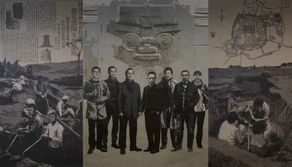 《良渚考古队》 鲁利峰、许伯阳、沈逸俊、吴家威、王克景、余惠恒、袁亚威 200×355cm 套色木刻、宣纸