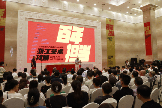 特展由省委宣传部、省委直属机关工作委员会、省委党史和文献研究室指导,省文联、中国美术学院主办。这也是浙江文艺界学习贯彻习近平总书记在庆祝中国共产党成立100周年大会上重要讲话精神的献礼之作。