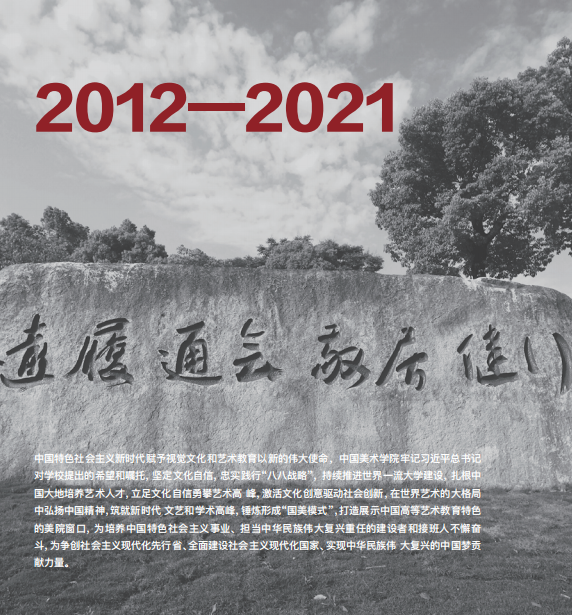 1978 年至2012 年,中国社会经历了深刻的历史变迁。学校在党的领导下,始终以解放思想、自觉改革的胆魄,接受改革开放的洗礼和塑造。在这三十多年里,学校紧抓机遇、迎接挑战,赢得了规模与结构的历史性拓展,开拓了特色鲜明、内涵丰满的国美之路。进入 21 世纪,学校更是高扬“建设世界一流美术学院”的宏远理想,在通往艺术教育和学术高峰的道路上砥砺前行,取得了跨越性发展,确立了学校在当代高等艺术教育中的标杆地位,也为开启新时代新征程标定出新的历史坐标与目标方向。