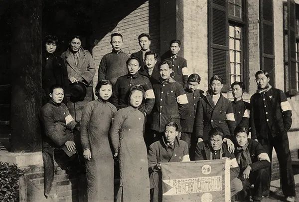 彦涵(后排右起第二人)与杭州艺专抗敌宣传画队的师生合影