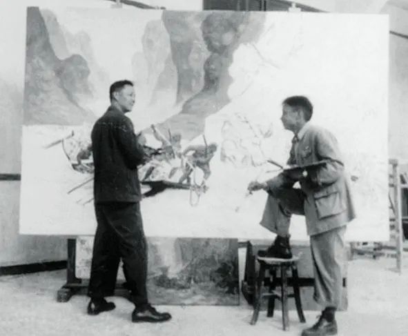 1951年,张漾兮与庄子曼先生一起受文化部委托创作油画《巧夺金沙江》(现藏于中国国家博物馆)