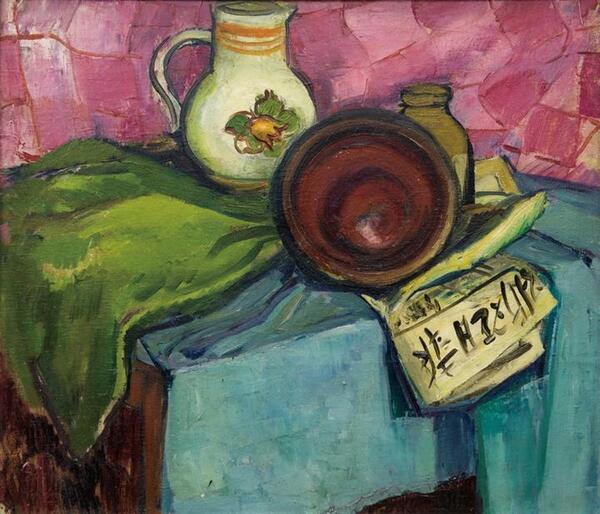 这次的展览中,有件名为《有报纸的静物》的作品和《浙江日报》颇有渊源,这也和埃乌琴•博巴在中国美院的经历有关。