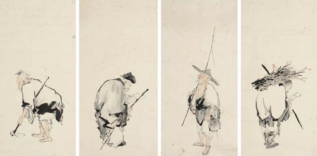▲ 《渔樵耕读》67cm×32cm×4 纸本设色