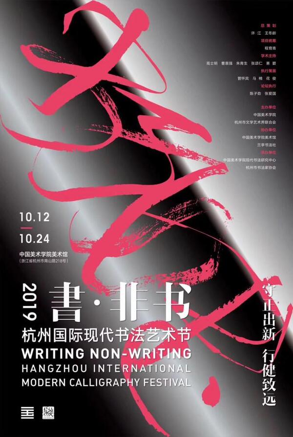 2019年10⽉12⽇上午10点,“书·非书:2019国际现代书法艺术节”(以下简称“书·非书”) 将在中国美术学院美术馆(杭州市南山路218号)启幕,展览持续至10⽉24⽇。12⽇下午、晚上至13⽇上午将启动三场分量极重、大咖云集的学术研讨会。本届艺术节以“守正出新,行健致远”为主题,希翼从书法艺术的核心问题和本体语言出发,行健致远地促进和展示现代书法的当代实践。