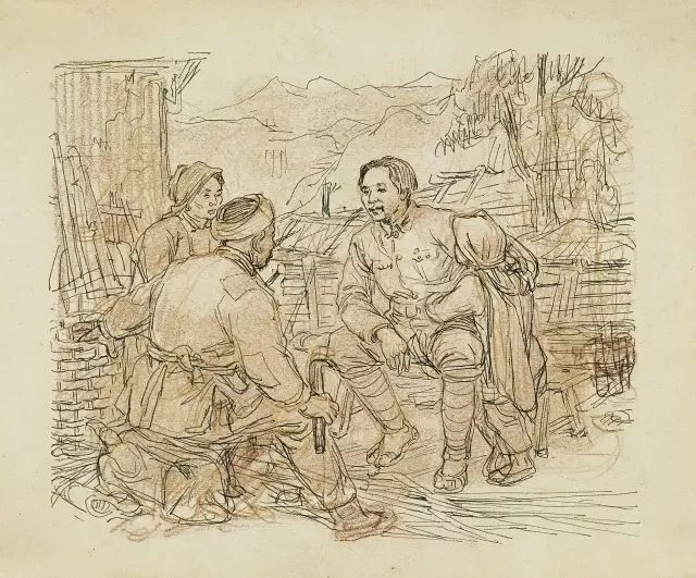 领袖与人民画稿 37.1cmx23cm 纸本速写 年代不详 浙江美术馆藏
