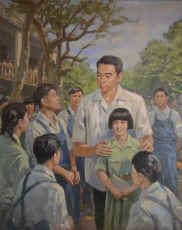 周恩来与新旅小团员 136cmx110cm 布面油画1985年 新安旅行团历史纪念馆藏