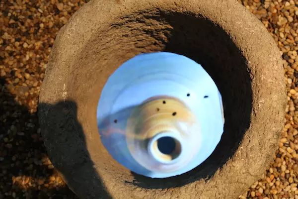 入口的地方设立了一个水口,这个水口是过去江南每个村子进去的地方都会有的一个装置,观众先小坐一下,洗洗脸、洗洗头,然后再进村,这是一个充满仪式感的东西。水口旁边用图像做了一棵老树呼应这个空间,两边分别有入口,可以进入后面的空间。
