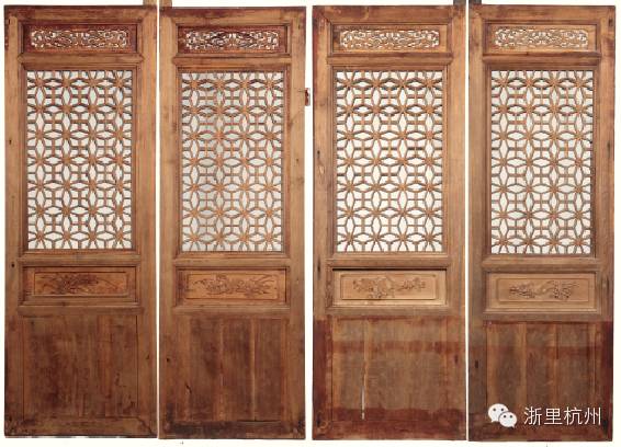 清代中期菱纹花鸟四屏门。来自浙东地区,干净不失江南秀气,腰板雕以梅兰竹菊四君子图。