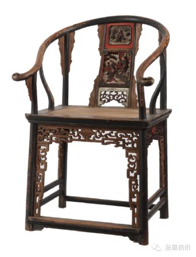 人物开光镂雕券口圈椅。清式圈椅较明式圈椅用料厚重,装饰繁复华美,椅背、牙板、牙条、束腰无所不雕。