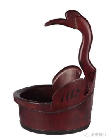 民国鹅桶。鹅桶在江南主要用于盛放浣洗衣服,整体造型是一只展翅的鹅和浅木桶的巧妙结合。集实用与审美为一体。