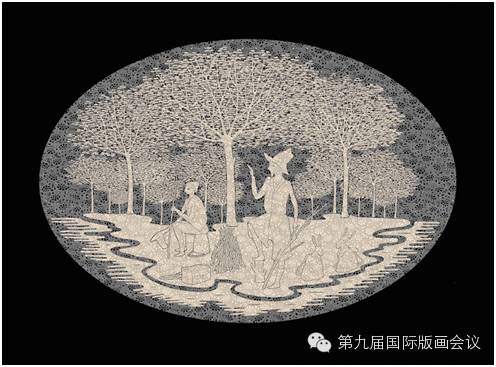 一个重要的启示:在版画艺术创作中,艺术家的观念与技术表达是不可拆分的共体,正如我们很难将说是丢勒创造了雕凹线刻美轮美奂的精彩,还是这种技术方式成就了丢勒的版画。那个时代有许多人都在用这种技术,为什么只有丢勒成为雕凹线刻最杰出的代表?其主要原因是丢勒严谨的硬笔素描与手工雕刀在金属板上划出线条具有高度的一致性。在此,艺术家脑海中抽象的艺术理念与印刷方式的技术质感产生共振,形成合二为一的最佳表达路径。
