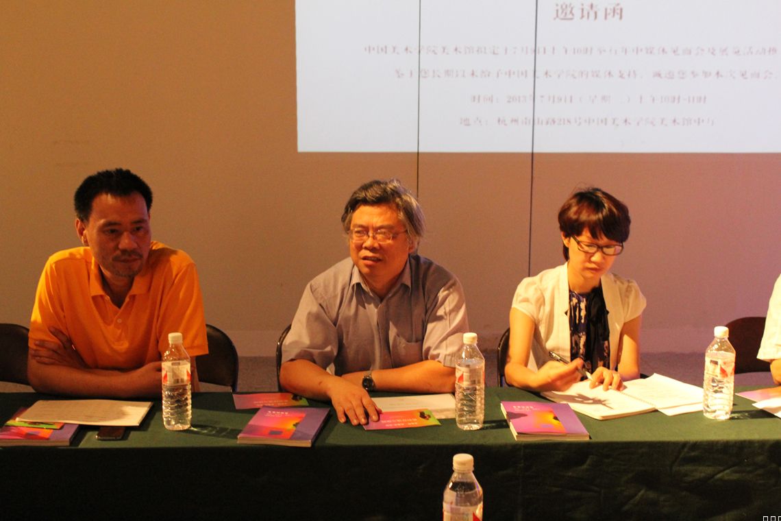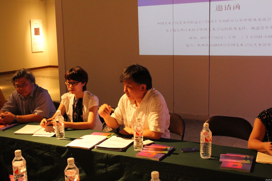 2013年7月9日,中国美术学院美术馆馆长杨劲松率美术馆全体工作人员在展厅里举行年中媒体见面会。美术馆举办此次见面会,一方面是向媒体朋友介绍下半年中国美院美术馆即将开展的艺术活动,尤其是今年恰逢中国美院85周年校庆,会有一些特别的展览策划;另一方面也是就“美术展览如何和公众发生关系?”等问题听取媒体朋友的意见,杨馆长在见面会上一再表达了美术馆应该“放下身段走进大众”的理想和决心,甚至打趣道:“大家哪怕是大热天走进来吹吹空调、逛一逛都好,只要老百姓步入了美术馆,我们就成功了。”馆长的诚意感动了每一个到场的记者。